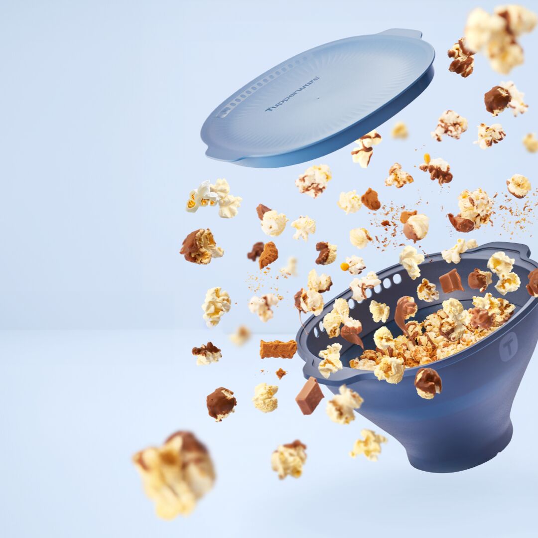 Design flexível e conveniente – Uma solução completa para estourar, temperar, agitar e servir! Após a utilização, pode ser armazenado de forma compacta.