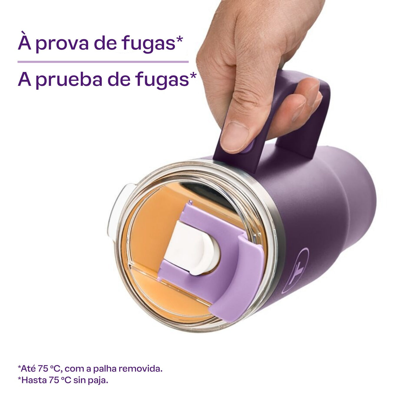 Segurança: Não uses a palhinha para bebidas quentes e evita bebidas carbonatadas com tampa fechada.